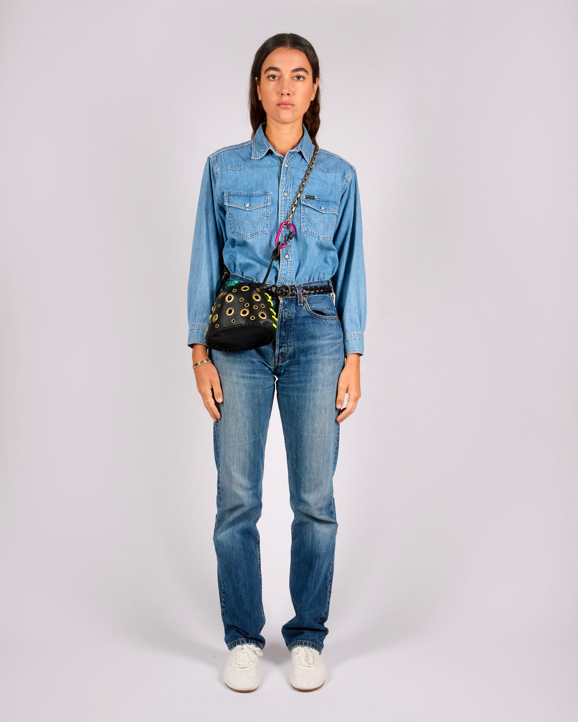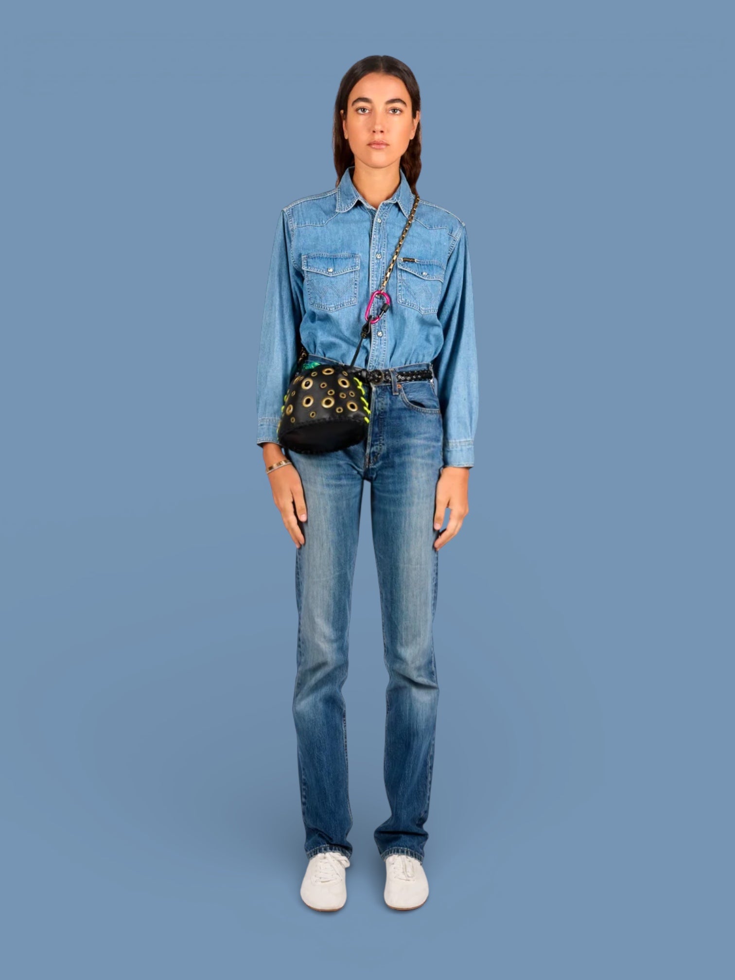Effortlessly transitions between shoulder bag, crossbody, or pouch with a simple drawstring pull.